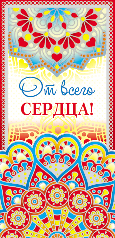 КД-11398 Конверт для денег. От всего сердца! Вертикальный (серебряная фольга, узоры)
