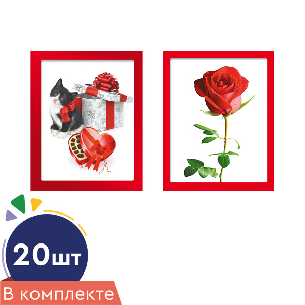 *БК-17962 Комплект поздравительных карточек. Роза и котенок (20 шт.: 2 вида по 10 шт.)