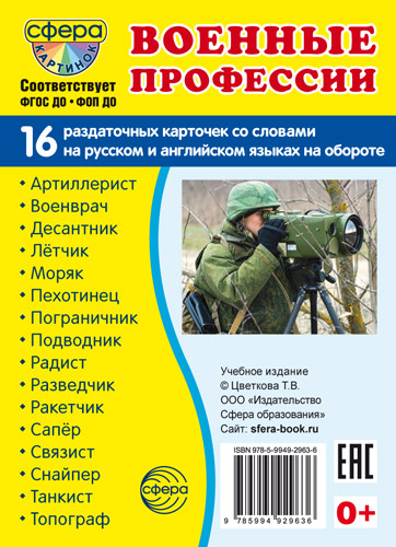 Дем. картинки СУПЕР Военные профессии. 16 демонстрационных картинок с текстом на обороте (учебно-методическое пособие с комплектом демонстрационного материала 173х220 мм, познавательное и речевое развитие)