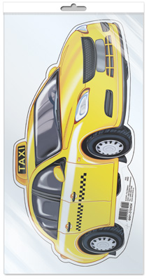 *ФМ1-10454 ПЛАКАТ ВЫРУБНОЙ А4 В ПАКЕТЕ. Машина такси (УФ-лак, в индивидуальной упаковке, с европодвесом и клеевым клапаном)