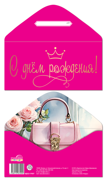 КДС-17683 Конверт для денег на склейке. С Днем рождения! (женский, цветы)