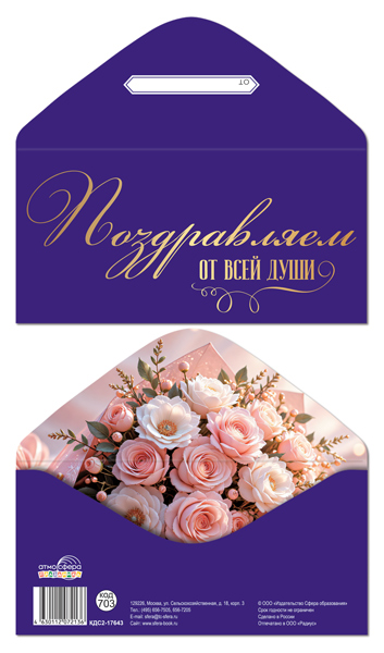 КДС2-17643 Конверт для денег на склейке. Поздравляем от всей души (женский, золотая фольга)