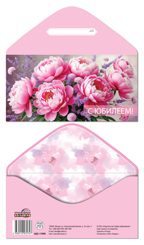 КДС-17690 Конверт для денег на склейке. С Юбилеем! (женский, цветы)