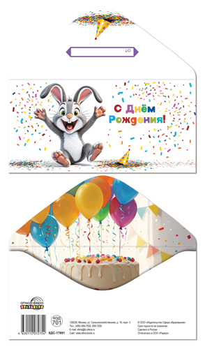 КДС-17691 Конверт для денег на склейке. С Днем рождения! (детский, зайчик)