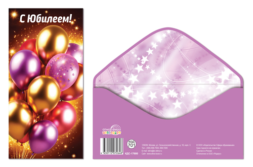 КДС-17680 Конверт для денег на склейке. С Юбилеем! (унисекс, шарики)