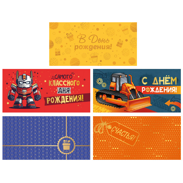 *КД-17664 Комплект конвертов для денег. В ассортименте-2 (5 шт)