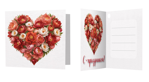 М-16981 Мини-открытка двойная. Без надписи. Сердце