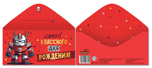 КДС2-17124 Конверт для денег на склейке. Самого классного дня рождения! (детский, золотая фольга)