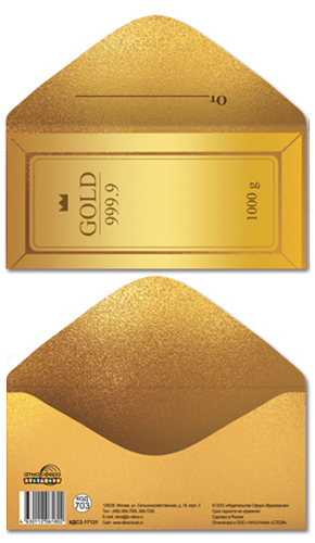 КДС2-17131 Конверт для денег на склейке. Слиток золота (без текста, золотая фольга)