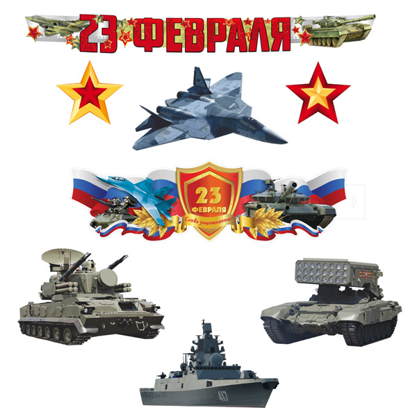 *КБ-17209 Комплект для оформления интерьера. 23 февраля (плакат А3, 5 фигур военных А3 и гирлянда)