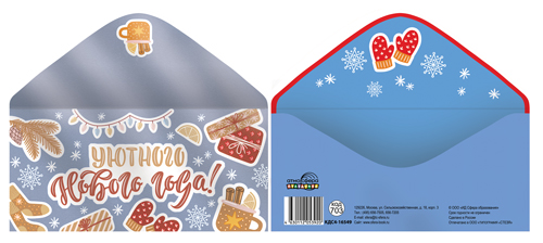 КДС4-16549 Конверт для денег на склейке. Уютного Нового Года! (металлизация)