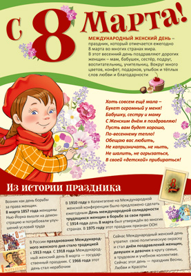 ПО-14435 Плакат А3. Праздничные даты по ФОП: 8 марта - Международный женский день