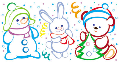 ШМ-12007 Карточка-раскраска новогодняя. Снеговик и звери (формат 200х107 мм)