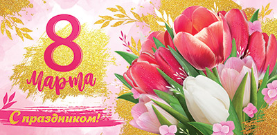 М-15687 Мини-открытка двойная. 8 марта (уф-лак)