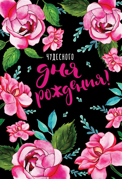 Ц-11444 Открытка среднего формата. С Днем Рождения! Текст (УФ-лак)