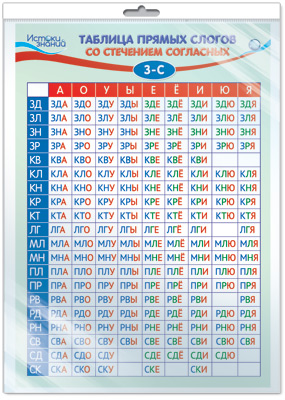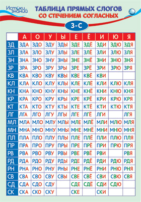 ПЛ-14098 Плакат А3. Таблица Прямых слогов со стечением согласных З-С