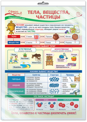 *ПО-13969 ПЛАКАТ А3 В ПАКЕТЕ. Окружающий мир в 3 классе. Тела,вещества,частицы (в индивидуальной упаковке, с европодвесом и клеевым клапаном)
