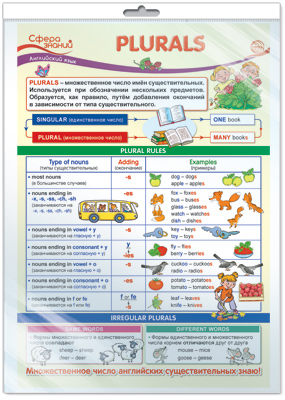 *ПО-14147 ПЛАКАТ А3 В ПАКЕТЕ. Английский язык в 3 классе. Plurals (в индивидуальной упаковке, с европодвесом и клеевым клапаном)