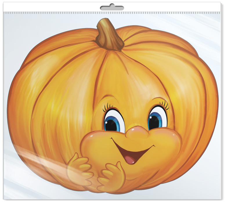 *ФМ1-14053 ЛПАКАТ ВЫРУБНОЙ А4 В ПАКЕТЕ.Тыква (УФ-лак, в индивидуальной упаковке, с европодвесом и клеевым клапаном)
