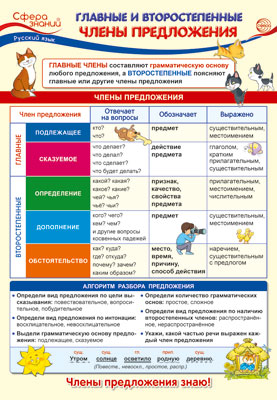 ПО-14257 ПЛАКАТ А3. Русский язык в 4 классе. Главные и второстепенные члены предложения