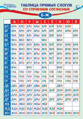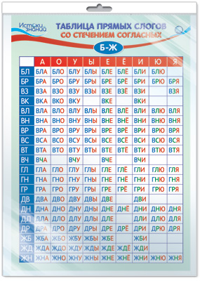 *ПЛ-14097 ПЛАКАТ А3 В ПАКЕТЕ Таблица Прямых слогов со стечением согласных Б-Ж (в индивидуальной упаковке, с европодвесом и клеевым клапаном)