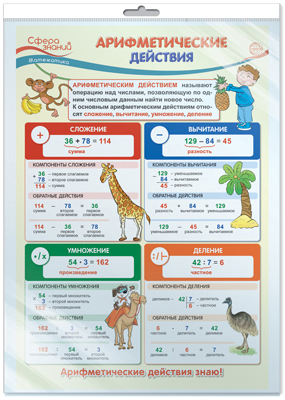 *ПО-14346 ПЛАКАТ А3 В ПАКЕТЕ. Математика в 4 классе. Арифметические действия (в индивидуальной упаковке, с европодвесом и клеевым клапаном)