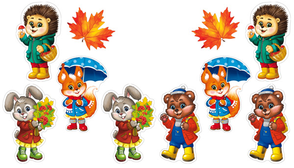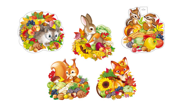 *КМ-17570 Комплект для оформления интерьера на скотче. Звери в дарах осени (5 фигур А4)