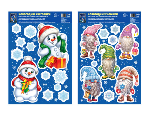 *КБН-16891 Комплект новогодних наклеек. Новогодние персонажи (многоразовые, видны с обеих сторон)