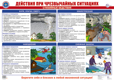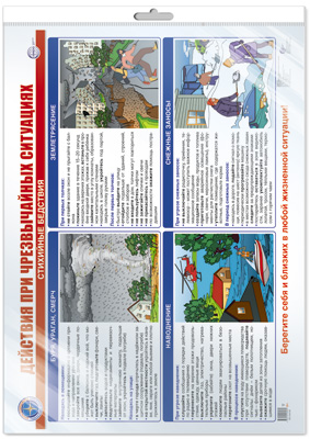 ПЛ-16135 Плакат А2 ЛАМИНИРОВАННЫЙ. Действия при чрезвычайных ситуациях. Стихийные бедствия