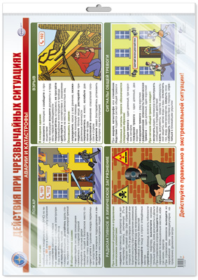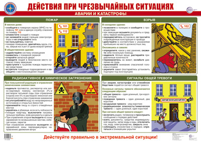 ПЛ-16358 Плакат А2 ЛАМИНИРОВАННЫЙ. Действия при чрезвычайных ситуациях. Аварии и катастрофы