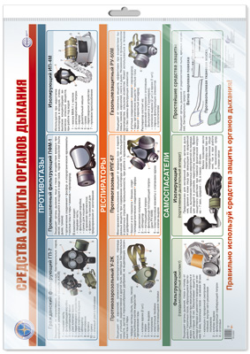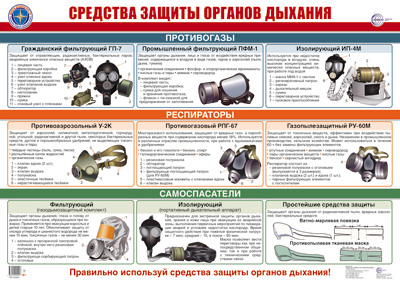 ПЛ-15931 Плакат А2 ЛАМИНИРОВАННЫЙ. Средства защиты органов дыхания