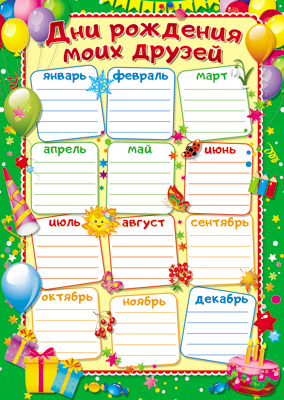 Ш-11989 Мини-плакат Дни рождения моих друзей