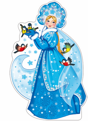 Ф-9861 Плакат вырубной А3. Снегурочка и синички (с блестками в лаке) - группа Персонажи сказок