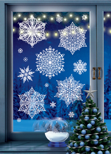 Н-16486 Новогодние наклейки А3+. Волшебные снежинки (белила, многоразовые, видны с обеих сторон)
