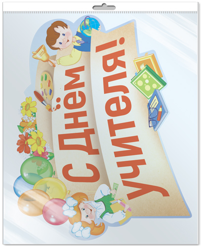 *ФБ-13869 ПЛАКАТ ВЫРУБНОЙ А2 В ПАКЕТЕ. С Днем учителя! (УФ-лак)