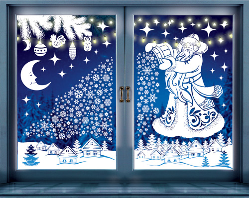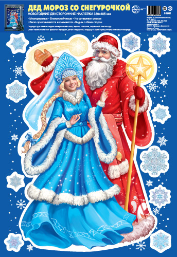 Н-16491 Новогодние наклейки А3+. Дед Мороз со Снегурочкой (многоразовые, видны с обеих сторон)