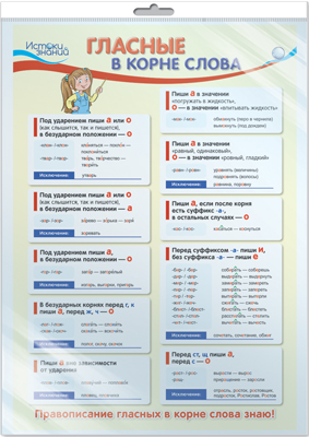 *ПЛ-12901 Плакат А3. Гласные в корне слова (в индивидуальной упаковке с европодвесом и клеевым клапаном)