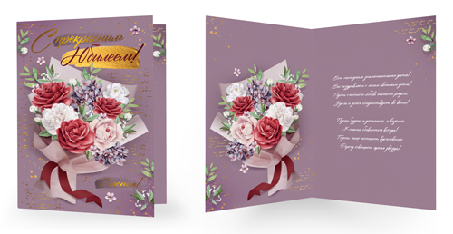 СФ1-16371 Открытка среднего формата. С Юбилеем! От всего сердца! Текст (золотая фольга)