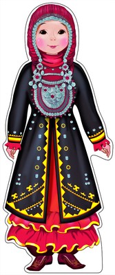 Ф-9330 Плакат вырубной А3. Девочка в башкирском костюме (с блестками в лаке) - группа Костюмы
