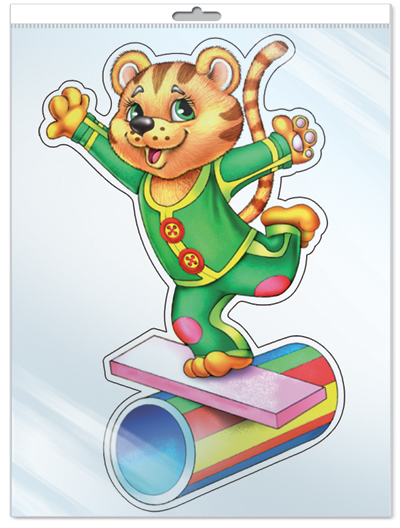 ФМ-11047 Плакат вырубной А4. Тигренок-циркач (с блестками в лаке)
