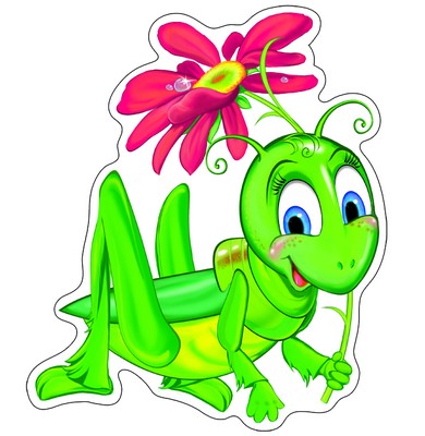 ФМ-9324 Плакат вырубной А4. Кузнечик с цветком (с блестками в лаке) - группа Насекомые