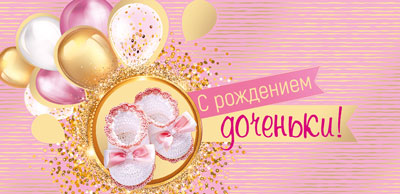 М-15553 Мини-открытка двойная. С рождением Доченьки! (уф-лак)