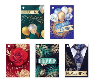 БК-15570 Комплект бирок. С днем рождения (20 штук: 5 видов по 4 штуки)