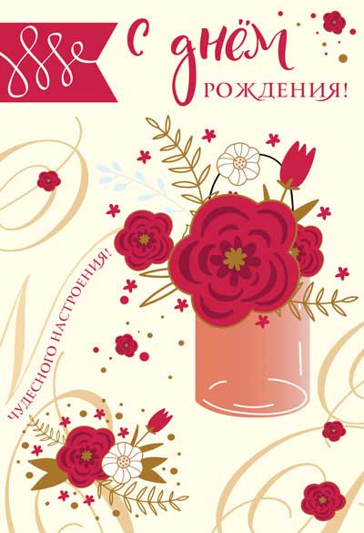 Ц-11451 Открытка среднего формата. Чудесного Дня Рождения! Текст (УФ-лак)
