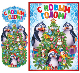 ГМ-11464 Гирлянда вертикальная с плакатом А3 (0,8 м). С Новым годом! Пингвины (с блестками в лаке)