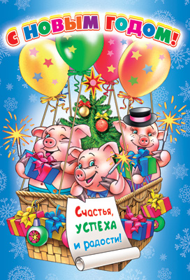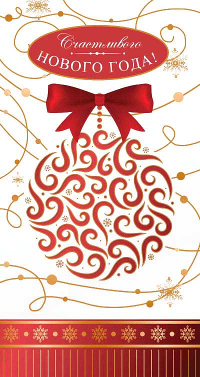 НТ-12010 Открытка евроформата. С Новым годом! Текст, пластизоль