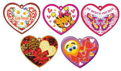 *КМ-13534 Комплект сердечек одинарных (10 шт.) 5 видов по 2 штуки в комплекте