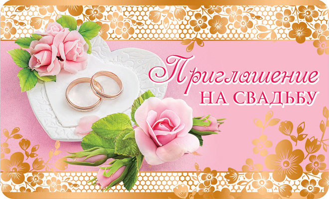 ПМ-11303 Приглашение на Свадьбу (золотая фольга, 140х85 мм)