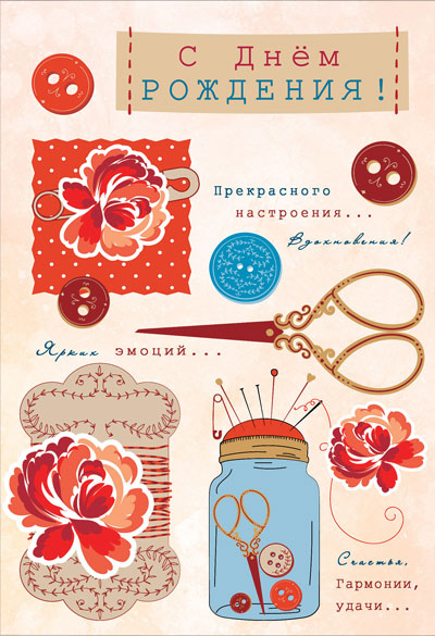 Ц-11447 Открытка среднего формата. С Днем Рождения! Текст (УФ-лак)