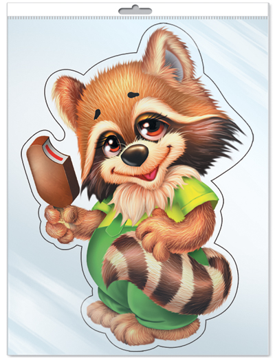 ФМ-11423 Плакат вырубной А4. Енотик с мороженым (блестки в лаке)
